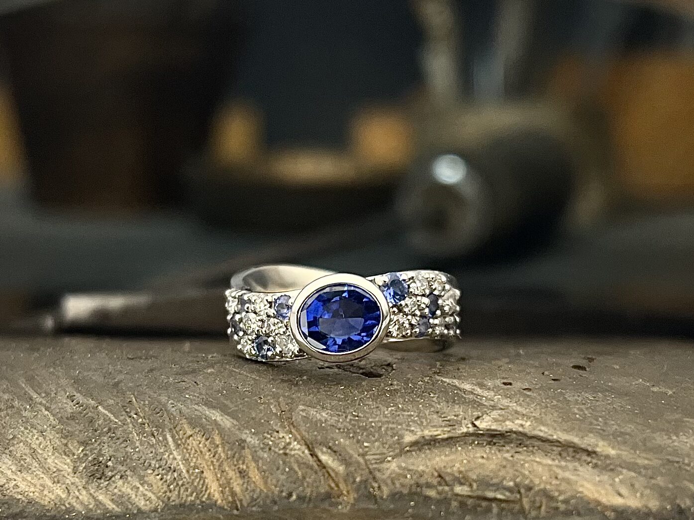 Asta kertoo aina olleensa sellainen, että ensin hoidetaan muiden ihmisten asioita kuntoon ja jos aikaa tai voimia jää jäljelle, on hänen vuoronsa. Ihan kiva niin tai sitten ei, koska liian usein se toinen vaihe on jäänyt hoitamatta. Viime aikoina hän on kuitenkin elänyt minä ensin, eli ”I love me” asenteella ja siksi hän teetti itselleen sormuksen, jonka tehtävänä on muistuttaa häntä pitämään itsestään huolta. Sormuksen päätähtenä ”uljastelee” hänen vihkisormuksesta talteen otettu sinisafiiri, joka sai vierelleen timantteja, sekä eri sävyisä pienempiä sinisafiireja. Sormuksen rungosta ei suoraa kohtaa löydy ja aaltoilevalle muodollekin on syynsä. Sen lisäksi, että hän on pyöreiden muotojen ystävä, on hänen sukunimensä Aalto, joten suora runko ei tullut kysymykseenkään. Asta sai sormuksen sormeensa sopivasti samana päivänä, kun täytti pyöreitä vuosia, joten onnea Asta. Alta löytyy sormuksesta lisää kuvia, sekä kuva vihkisormuksesta ennen muutosta. Valtaosan sormuksen valmistamisen kuluista Asta maksoi vanhoilla kultakoruillaan.