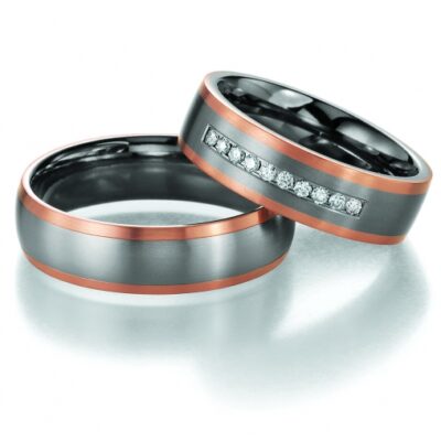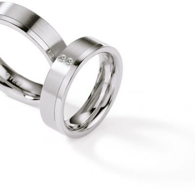 Tässä sormuksessa on taitavasti yhdistetty titaanisormus ja terässormus. Sormuksen runko on terästä, jota titaani tyylikkäästi koristaa. Saat sormuksen timanteilla tai ilman.