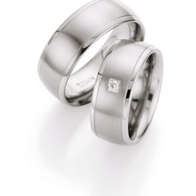 Tyylikäs titaanisormus, joka on saatavana timanteilla tai ilman . Sormus on keskeltä satiinipintainen ja reunoiltaan kirkaspintainen. Pyöristetty sisäpuoli tekee sormuksesta miellyttävän käytössä, kuten myös matala timantin istutus, joka eikä tartu kiinni. Titaani on kevyt ja ketävä materiaali, joka ei aiheuta allergioita. Sormuksen leveys on 6,0 mm ja timantit 0,03 ct W si.