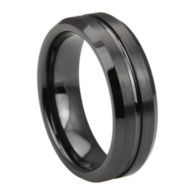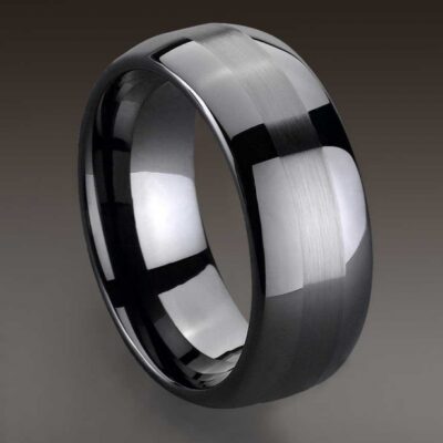 Tungsten-sormukset sopivat kovempaankin käyttöön, sillä naarmuuntumaton tungsten on maailman kovin metalli. Sisäpuoli on miellyttävästi pyöristetty. Sormuksen musta osa naarmuuntumatonta keramiikkaa.