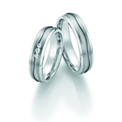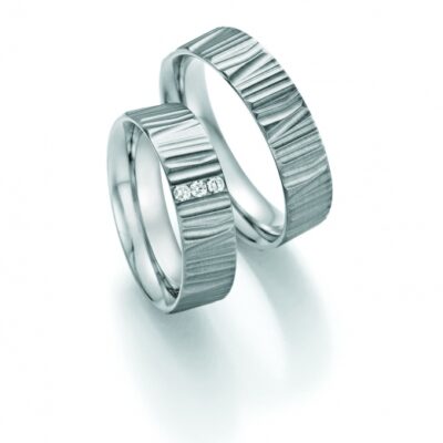 Titaanisormus, joka on saatavana timanteilla tai ilman. Sormus on keskeltä satiinipintainen ja kuviodut reunat kirkaspintaiset. Miellyttävä pyöristetty sisäpuoli tekee sormuksesta miellyttävän käytössä, kuten myös timanttien matala istutus, joka ei tartu kiinni. Titaani on kevyt ja kestävä materiaali, joka ei allergisoi.