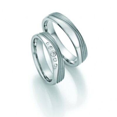 Tyylikäs titaanisormus, jossa sormuksen toisella puolella on uria ja satiinipinta ja toisella puolella sileä ja kirkas pinta. Miellyttävä pyöristetty sisäpuoli tekee sormuksesta miellyttävän käytössä, eikä timanttien matala istutus tartu kiinni. Titaani on kevyt, kestävä ja allergisoimaton materiaali.