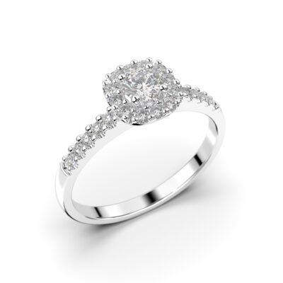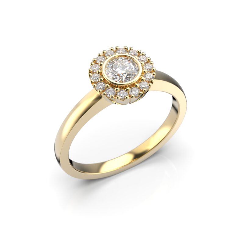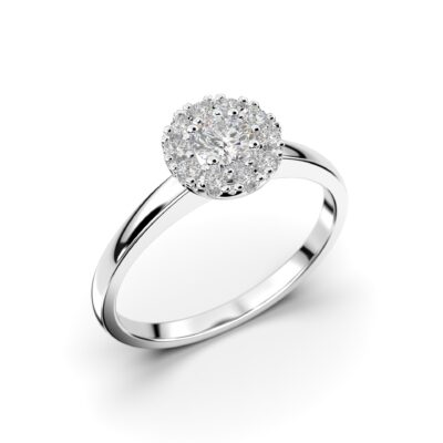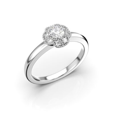 Tyylikäs Festiven Amelie-timanttisormus, jonka keskellä on näyttävä 0,25 ct briljanttihiottu timantti. Timanttikehän ympärille on istutettu 14 säihkyvää timanttia. Kevyesti pyöristetty, sileä runko. Sormus sopii käytettäväksi yksinään sekä yhdistettynä toisen sormuksen rinnalle. Yhteensopiva malli erityisesti Festiven siron Juliette- rivisormuksen kanssa.