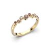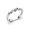 Festive Drop-sormus, jossa erikokoiset timantit, pinkit safiirit sekä rubiinit on aseteltu epäsäännölliseen riviin antaen eloisan ja raikkaasti perinteisistä rivisormuksista poikkeavan ulkomuodon.
