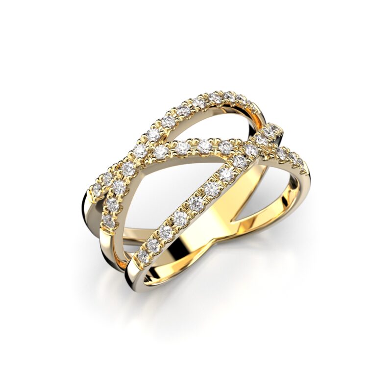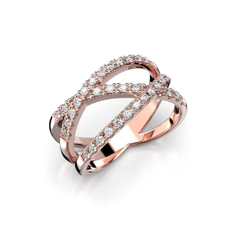 Festive Maxine muodostuu kolmesta toistensa yli risteävästä rungosta muodostaen näyttävän sormuksen. Festive Maxinessa on 34 briljanttihiottua timanttia. Sormus on malliltaan leveä, mutta kapeiden runkojen myötä siro