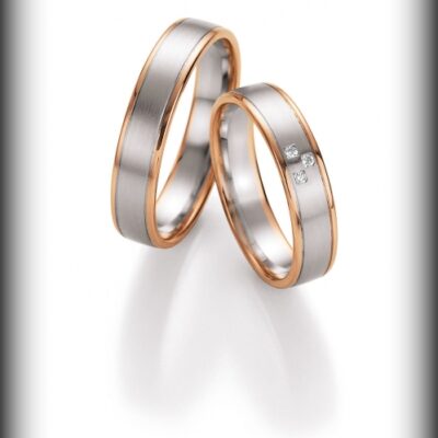 valmistettuja valko-, kelta- tai kaksiväri-sormuksia, joiden matala