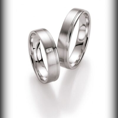 valmistettuja valko-, kelta- tai kaksiväri-sormuksia, joiden matala