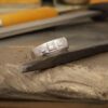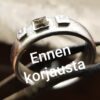 Asiakas toi verstaalleni vaimonsa melkoisen "resuiseen" kuntoon menneen vihkisormuksen, josta keskimmäinen kivi oli irronnut, mutta onneksi edelleen tallessa. Vanha "kastikka", jossa kivi oli ollut kiinni, oli kulunut korjauskelvottomaksi, joten kovia kokeneelle timantille valmistui aivan uusi.