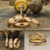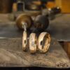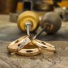 Mitä tapahtuu asiakkaideni kultakoruille, kun he tuovat ne verstaalleni??? No…tämä seppähän laittaa ne "pataan" ja sulattaamutta luvan kanssa toki. Niin kävi myös Rinnan vanhoille koruille, kun hän miehensä kanssa päätti laittaa kihla- ja vihkisormukset uusiksi. Vanhat sormukset, varsinkin kivellinen vihkisormus oli epämiellyttävä sormessa, sillä se oli koverrettu sisäpuolelta "teräväksi" ja siitähän ei sormi tykkää. Rinnan tuoma kultakasa oli niin iso, että siitä sai helposti ronskit sormukset, joissa sisäpuoli on nyt miellyttäväksi pyöristetty ja vanhan vihkisormuksen timantit on tietenkin istutettu uuteen sormukseen.