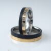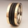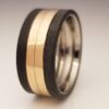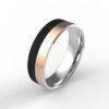 Titaanisormus, jonka musta hiilikuitu tyylikkäästi täydentää. Titaanisormukset on mm. keveytensä ja pehmeäksi pyöristetyn sisäreunan ansiosta erittäin miellyttäviä käytössä. Tämän titaanisormuksen pinta on kullattu.