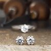 Tulevan morsiammen perinteinen "kruunuistutettu" vihkisormusvalinta valkokultaisena. Toisessa kuvassa sulhasen looginen valinta huomenlahjaksi, eli vihkisormukseen sopivat korvikset.