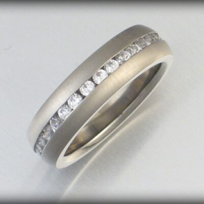 Kahden sormuksen setti, johon sisältyy allianssisormus zirkon-kivillä ja musta puolipyöreä kivetön sormus, jonka materiaali on ionisoitua terästä. Allianssisormuksessa on kiviä ympäri koko sormuksen. Sormusten leveydet 3.0 mm, eli yhteensä 6,0 mm.